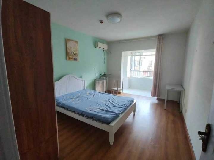 有电梯 最好是男生租 因为现在就只有一个男生室友 房间差不多有25-30平方米 有阳台晾衣架 空调暖气都有 卫生间也不小 有洗衣机 床是1.5*1.9 情侣住也是够的 爽快的首月可便宜200 有衣柜 距离万达也很近 离快递站方便 楼下也有直饮水机 民水民电 三个月一交 物业费一个月80 南门北门都有公交站牌